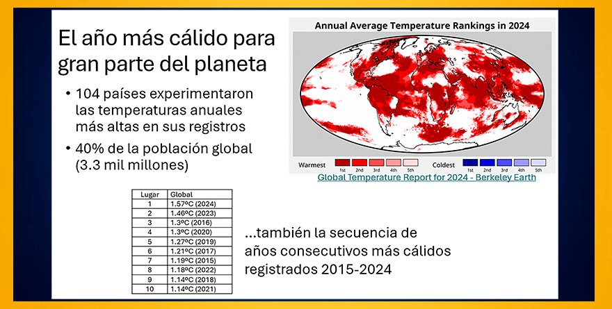 Ciudad Universitaria, CDMX, 17 enero 2025.- Basados en datos y análisis de los principales centros de información climática del mundo, los científicos de la UNAM Jorge Zavala Hidalgo, Francisco Estrada Porrúa y Amparo Martínez Arroyo explicaron que 2024 fue, con amplio margen, el año más cálido en el planeta desde que se tienen registros confiables de la temperatura (1850).