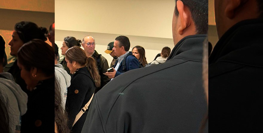 San Luis, SLP, 18 noviembre 2025.- ¡Sí, el alcalde Galindo! Saliendo de SLP y llegando a CDMX bien humilde, con su mochilita Montblanc que cuesta más que varios súper juntos.