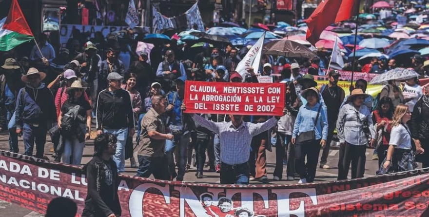 La CNTE se movilizó a la Ciudad de México para insistir en que la Presidenta Claudia Sheinbaum se siente a dialogar con su Comisión Nacional Única de Negociación (CNUN).
