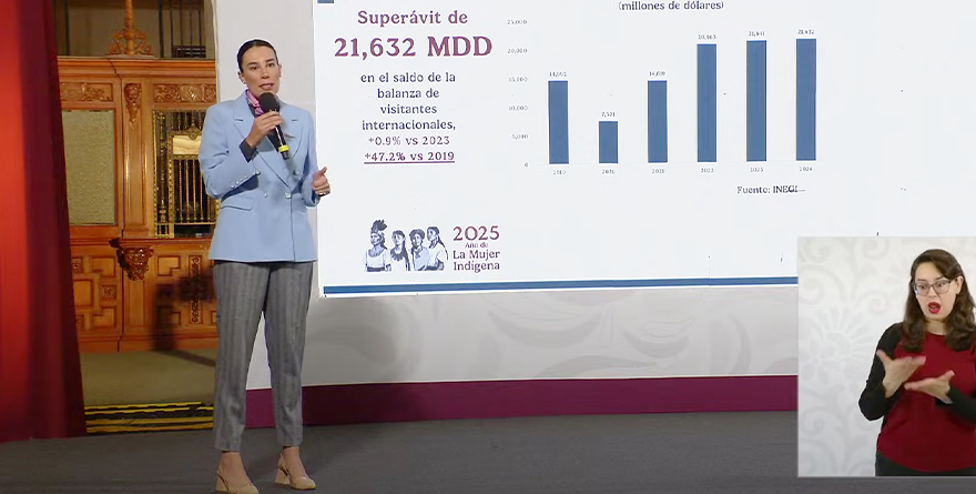 Durante la mañanera, la Secretaria de Turismo, Josefina Rodríguez, informó que el tianguis 2025 será el primero en el que hayan «activaciones fuera de nuestras fronteras».