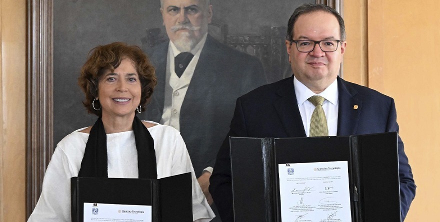 El rector de la UNAM, Leonardo Lomelí Vanegas, y la secretaria de Ciencia, Humanidades, Tecnología e Innovación (Secihti) del gobierno de México, Rosaura Ruiz Gutiérrez, signaron un convenio marco para desarrollar, fortalecer y articular capacidades regionales y locales en materia de investigación científica, humanística, de desarrollo tecnológico e innovación, a fin de prevenir, atender y, en su caso, resolver problemas nacionales prioritarios.