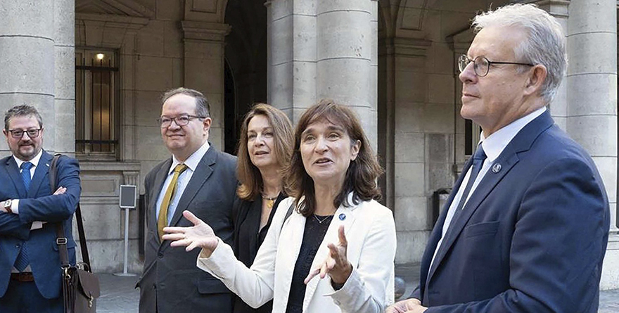 Guillaume Fiquet, vicepresidente de Asuntos Internacionales; Béatrice Pérez, decana de la Facultad de Humanidades; Samantha Chareille, directora de Asuntos Internacionales y Europeos de la Universidad de la Sorbona; y David Marcilhacy, profesor de Historia y Civilización Contemporáneas, en la Facultad de Humanidades.