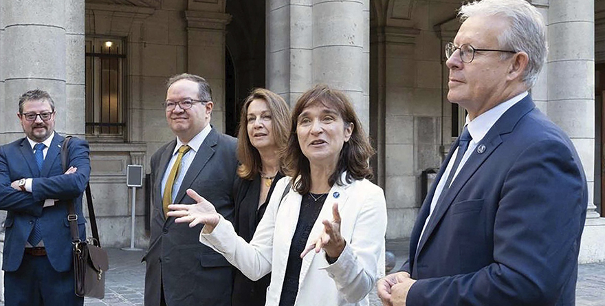 Guillaume Fiquet, vicepresidente de Asuntos Internacionales; Béatrice Pérez, decana de la Facultad de Humanidades; Samantha Chareille, directora de Asuntos Internacionales y Europeos de la Universidad de la Sorbona; y David Marcilhacy, profesor de Historia y Civilización Contemporáneas, en la Facultad de Humanidades.