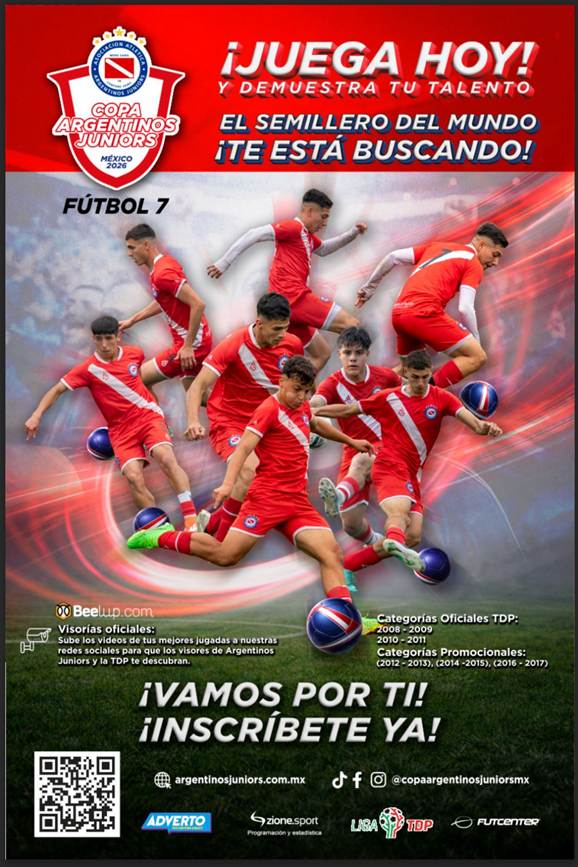 Para mayores informes consultar la convocatoria, en Facebook Copa Argentinos Juniors MX.