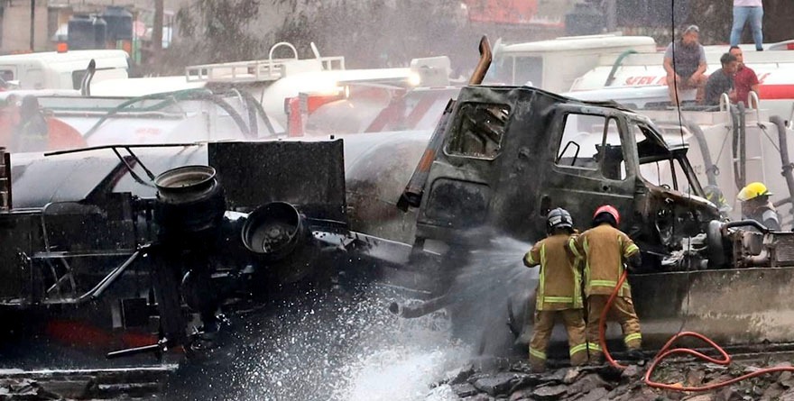 La unidad con capacidad para 49 mil 500 litros volcó debajo del Puente de La Concordia y, tras varios segundos de emitir una nube blanca, provocó la primera de una serie de explosiones.