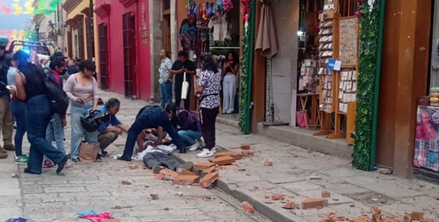 Una cornisa le cayó encima sobre el andador turístico, por lo que fue atendido por las unidades de protección civil de la ciudad de Oaxaca.
