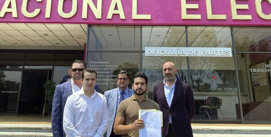 La denuncia fue encabezada por el abogado Miguel Alfonso Meza, presidente de la organización Defensorxs, quien acudió a las instalaciones del INE acompañado de representantes de Laboratorio Electoral y Politiklab.