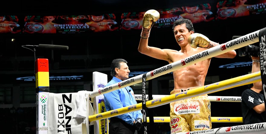 SLP.- Sábado en la noche en la Arena Potosí, espectacular e histórica con la contundente victoria de Rafael «El Divino» Espinoza ante Arnold Khegai.