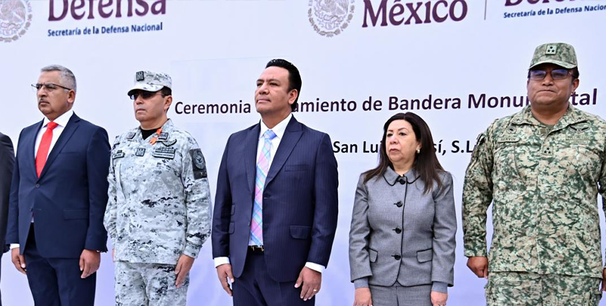 En representación del Gobernador Ricardo Gallardo Cardona, asistió al evento el secretario general de Gobierno, J. Guadalupe Torres Sánchez, donde las autoridades realizaron los honores a la bandera, una ceremonia que representa y fomenta la unidad y solidaridad entre las y los mexicanos además de enaltecer los símbolos patrios como parte de nuestro patriotismo y orgullo nacional.