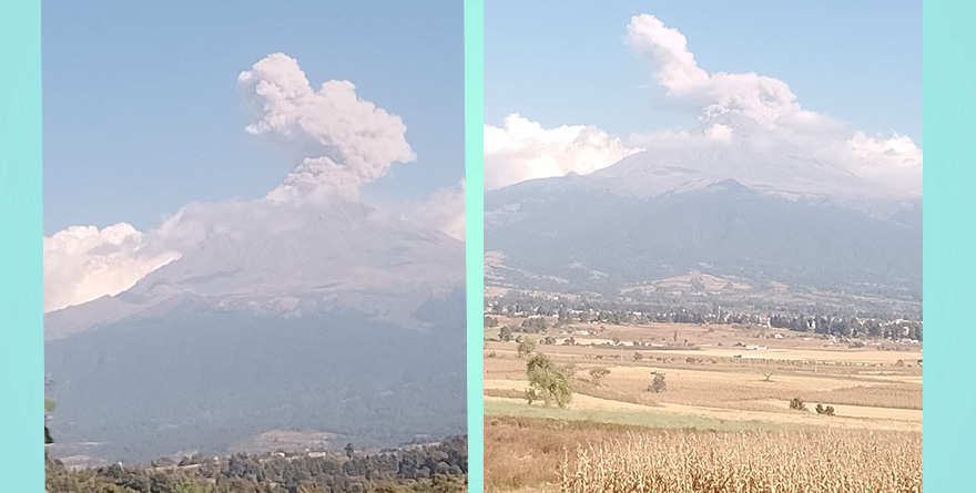 Tochimilco, Puebla, 26 diciembre 29024.- El volcán Popocatépetl alerta con su humareda este mediodía. Su imagen de 5 420 metros de altura, se agiganta con la columna de humo que se eleva al cielo de invierno con su azul inigualable, su belleza se conjuga con los riesgos de una eventual erupción.