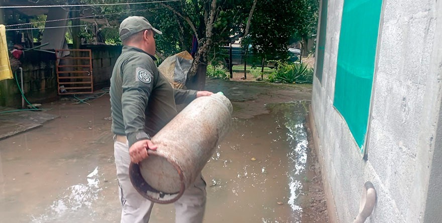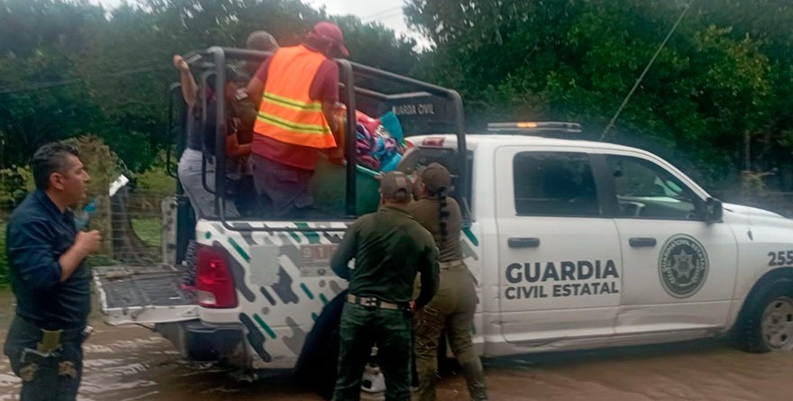 Una de las principales zonas afectadas fue el Barrio La Noria, en donde efectivos de la GCE en coordinación con Protección Civil, apoyan a la población y desalojan la zona, tras el incremento del río Moctezuma.