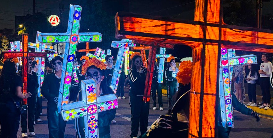 Uno de los contingentes más destacados fue el del Sistema Educativo Estatal Regular (SEER), que reunió a más de mil 300 participantes entre estudiantes, docentes y personal administrativo. Con creatividad y esmero, presentaron representaciones alusivas a la muerte y la vida, con trajes coloridos, música y mensajes que exaltaban el valor de las tradiciones. El director general del SEER, Martín Rodríguez Ramírez, reconoció el esfuerzo conjunto de las comunidades educativas y destacó el impulso del gobernador Ricardo Gallardo Cardona para hacer posible un evento de esta magnitud.