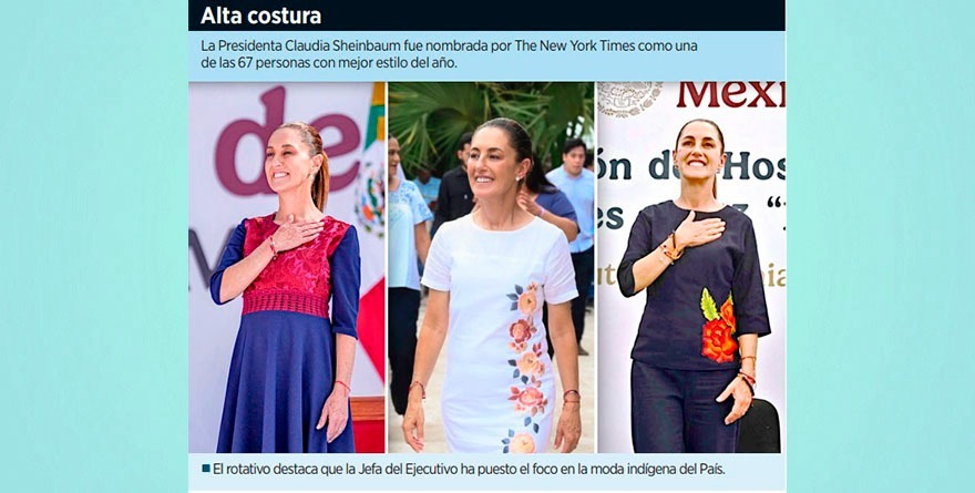 Ciudad de México 14 diciembre 2025.- La Presidenta Claudia Sheinbaum fue nombrada por The New York Times como una de las 67 personas con mejor estilo del año.