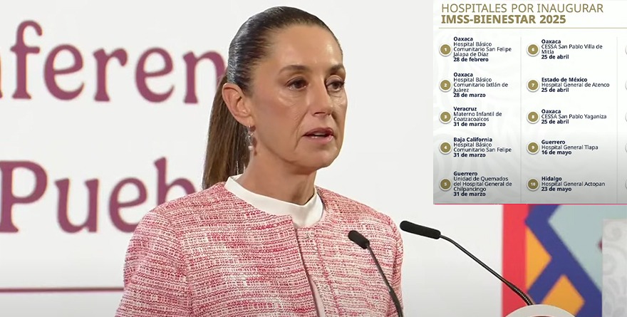 Ciudad de México— La presidenta de México, Claudia Sheinbaum Pardo, anunció la inauguración de nueve hospitales del IMSS, uno de ellos ubicado en Guanajuato capital, 19 del IMSS-Bienestar, cinco del ISSSTE, así como seis Unidades de Medicina Familiar (UMF) y ocho clínicas del IMSS-Bienestar en 2025.
