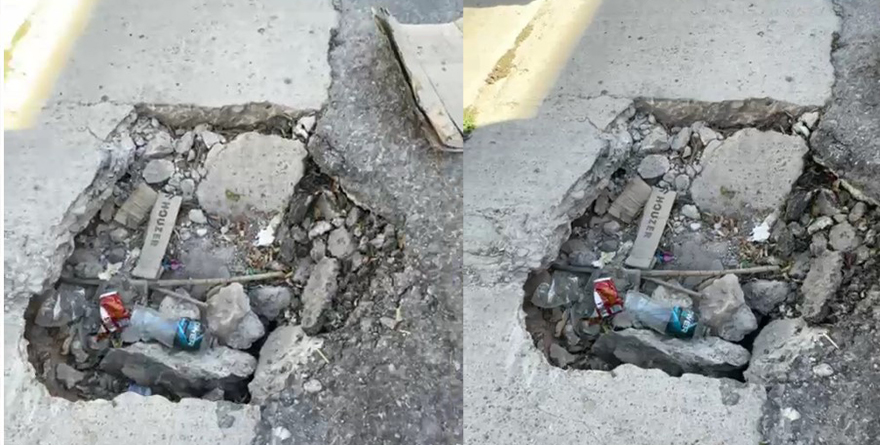 Los vecinos de la colonia colocaron cartón para que los conductores que pasan por el lugar no caigan y se dañe su vehículo.