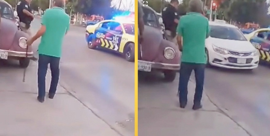 Los PoleSías no quisieron escuchar la réplica del afectado y simplemente le dijeron “pague su multa allá en el charco”, además de llamar a la grúa para que remolcara el vochito.
