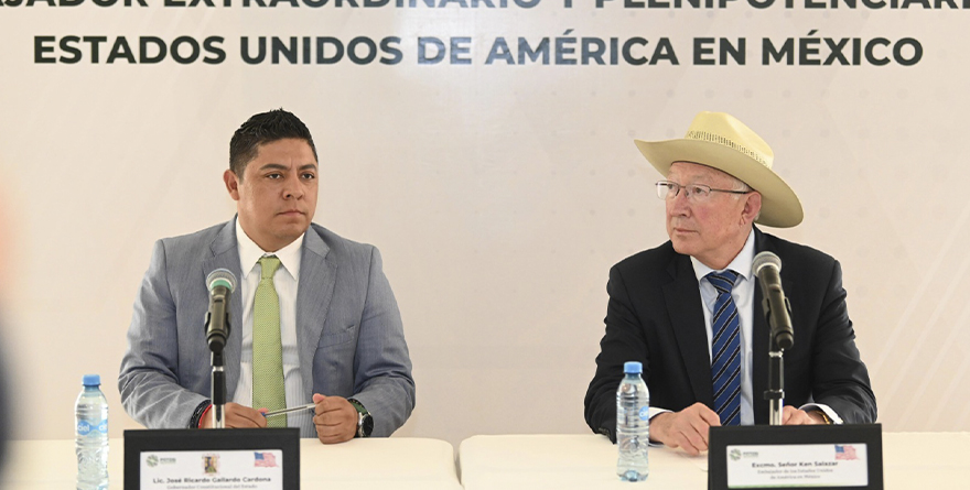 El Embajador, Ken Salazar, reiteró todo su apoyo y acompañamiento del gobierno de Estados Unidos para mejorar las condiciones de paz y seguridad a las autoridades potosinas, luego de conocer los dispositivos y operativos que se implementan, la estrategia de prevención, la capacitación y adiestramiento de las y los efectivos de la Guardia Civil Estatal.