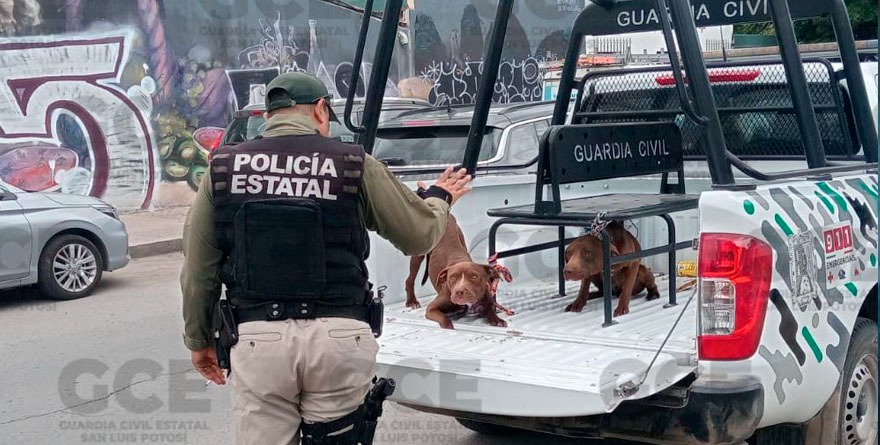 San Luis, SLP, 17 junio 2025.- En atención a una denuncia ciudadana, elementos de la Guardia Civil Estatal apoyaron el rescate y atención de dos perros en la colonia Prados de San Vicente Segunda Sección, quienes presentaban lesiones y desnutrición.