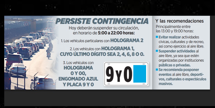 Por segundo día continuo, los vehículos con engomado de verificación 0 y 00 deberán acatar el Hoy No Circula.
