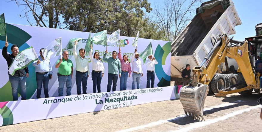 San Luis, SLP, 27 febrero 2026.- El Gobernador de San Luis Potosí, Ricardo Gallardo Cardona, arrancó en Cerritos la rehabilitación de la Unidad Deportiva “La Mezquitada”, que fortalecerá sin límites el apoyo al talento deportivo local con canchas, juegos infantiles, pista de atletismo e infraestructura parecida a la de los parques Tangamanga.