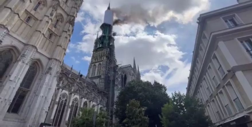 Arde la iglesia gótica de 1.000 años de antigüedad Notre Dame en Rouen. Uno de los sitios del patrimonio cultural más queridos de Francia.