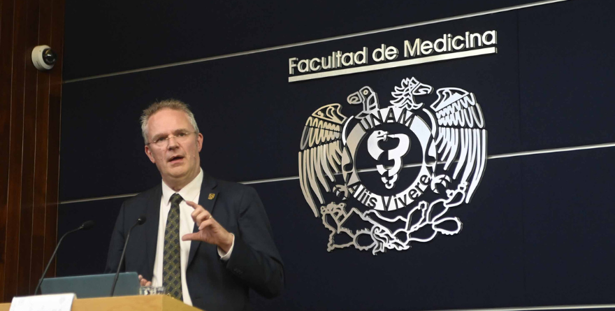 Momentos antes, el investigador holandés Peter GM ofreció una conferencia para estudiantes y docentes de la FM en la que abordó el pasado, presente y futuro de la educación médica.