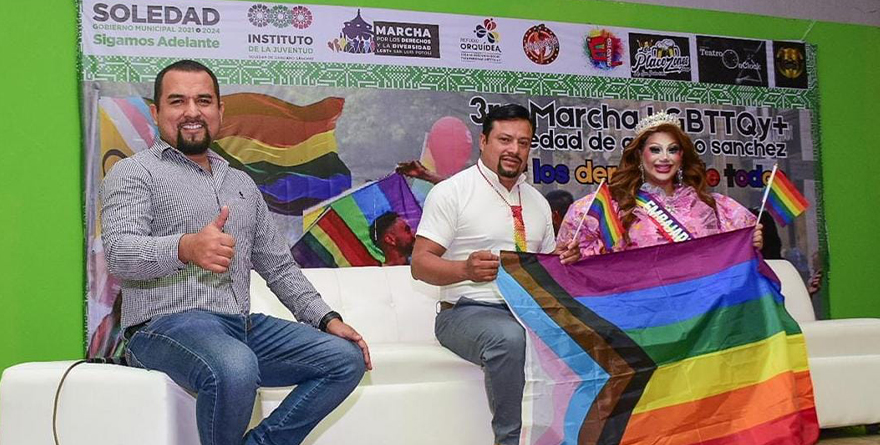 Soledad de Graciano Sánchez, SLP, 9 julio 2024.- El Ayuntamiento de Soledad de Graciano Sánchez se prepara para respaldar y sumarse a la lucha social por la no discriminación, el respeto y la inclusión a la comunidad LGBTTTIQ+, con una serie de actividades conmemorativas a lo largo de la presente semana, entre ellos la tradicional Marcha, que cumple tres años de llevarse a cabo en el municipio.