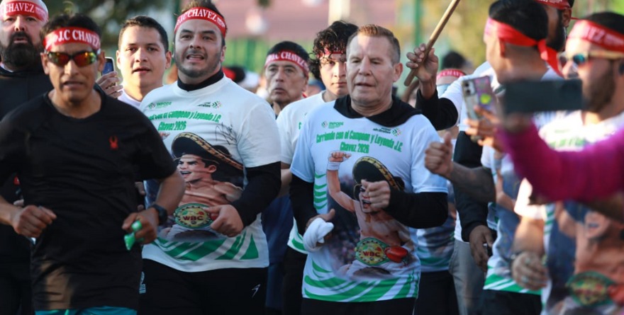San Luis Potosí, SLP.- No fue un nocaut, pero la fuerza del impacto fue la misma. Esta tarde, la Vía Alterna se transformó en un ring de cinco kilómetros donde cerca de 600 potosinos corrieron con singular alegría, cada paso significó un tributo en vida a la máxima leyenda del boxeo nacional Julio César Chávez.