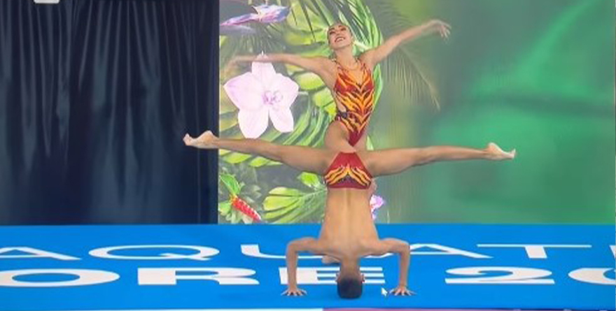 Ciudad de México, 24 julio 2025.- Los seleccionados mexicanos de natación artística, Joana Jiménez y Diego Villalobos concluyeron en el quinto lugar, con 218.8959 puntos, en la final de dueto mixto técnico, que se realizó este miércoles, en el marco del Campeonato Mundial de Deportes Acuáticos Singapur 2025.