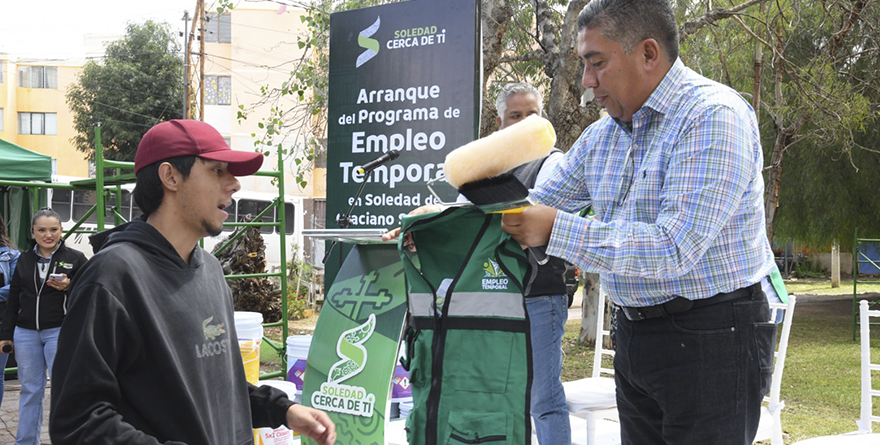 San Luis, SLP, 8 julio 2025.- El Presidente municipal de Soledad de Graciano Sánchez, Juan Manuel Navarro Muñiz puso en marcha el regreso del programa «Rehabilitación y Empleo Temporal», en la colonia Hogares Ferrocarrileros segunda sección, una iniciativa que impulsa el desarrollo social de las personas, al otorgar una oportunidad de empleo a jóvenes, hombres y mujeres, y contribuye a la transformación urbana del municipio, a través de mejoras de imagen en viviendas de tipo vertical.