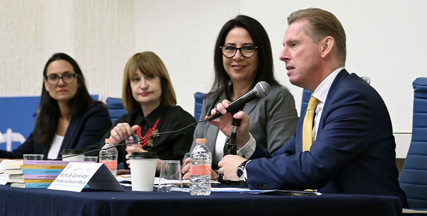 En la sesión moderada por Jeanette Moreno Casas, coordinadora del Centro de Estudios Europeos de la Facultad, la diplomática sentenció que solo podrá haber una paz verdadera cuando los estados más grandes y poderosos no puedan oprimir a sus vecinos más pequeños a su antojo, cambiar los mapas según su voluntad y decidir por encima de otros pueblos. “Se trata de respetar la soberanía e integridad territorial, de defender el derecho de todas las naciones a determinar su propio futuro”.