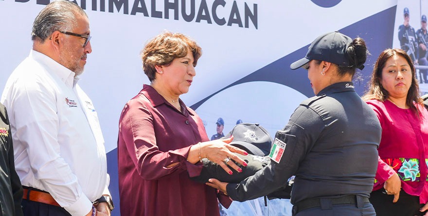 - La Mandataria estatal entrega 20 unidades nuevas y equipamiento a la Dirección de Seguridad Pública y Tránsito Municipal de Chimalhuacán.