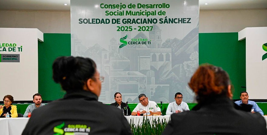 San Luis, SLP, 23 septiembre 2025.- Juan Manuel Navarro Muñiz, Alcalde de Soledad de Graciano Sánchez, encabezó la sesión ordinaria del Consejo de Desarrollo Social Municipal en la que participaron titulares de diversas áreas de la administración y consejeros vecinales de distintas colonias, con el objetivo de dar puntual seguimiento a las solicitudes ciudadanas en materia de seguridad, infraestructura, vialidad, alumbrado, agua potable y servicios municipales.