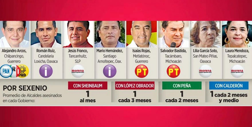 Durante el Gobierno del priista Enrique Peña Nieto (2012-2018) mataron a 30 Presidentes Municipales, en promedio uno cada 2 meses, y con el panista Felipe Calderón, la cifra fue de 29 Alcaldes asesinados, un promedio de un caso cada 2 meses y medio.