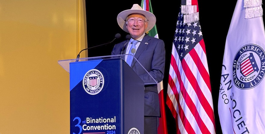 En el cierre de la Tercera Convención Binacional de la American Society of Mexico, Salazar comentó que la relación económica entre ambos países es para siempre, que se sostiene en el Tratado entre México, Estados Unidos y Canadá (T-MEC) y donde las cadenas de suministro son regionales, así como el diálogo a lo largo de 200 años de relaciones.