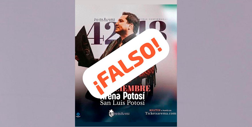 San Luis, SLP, 12 noviembre 2025.- Informa Arena Potosí que esta imagen y concierto de Julión Álvarez es totalmente falso, no caigan en estafas, todos los eventos y conciertos de la Arena están publicados en sus cuentas oficiales.