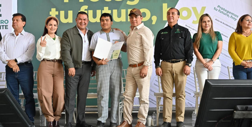 Adicionalmente, en la Secundaria Benito Juárez de Rioverde, Gallardo Cardona entregó pólizas del programa “Apoyo Seguro al Estudiante”, que brinda cobertura médica y protección ante accidentes escolares, y que este año beneficia a más de 560 mil alumnas y alumnos de las cuatro regiones del Estado.