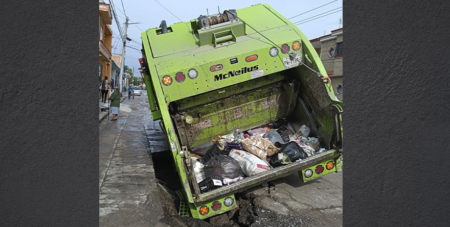 Pues resulta que ya sucedió lo que tenía que suceder: El enorme bache ya cobró su primera víctima y fue nada menos que un camión del servicio de limpia del propio ayuntamiento que quedó atrapado y seguramente con serias averías en el socavón.