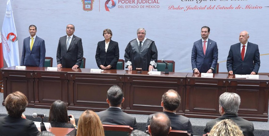 Toluca de Lerdo, México, 4 de julio de 2024.- Los diputados Jesús Gerardo Izquierdo Rojas y Elías Rescala Jiménez, presidentes de la Diputación Permanente y de la Junta de Coordinación Política de la LXI Legislatura mexiquense, respectivamente, presenciaron la entrega de las Preseas Poder Judicial del Estado de México 2024, evento encabezado por el magistrado Ricardo Sodi Cuellar, presidente del Tribunal Superior de Justicia estatal y la gobernadora Delfina Gómez Álvarez.