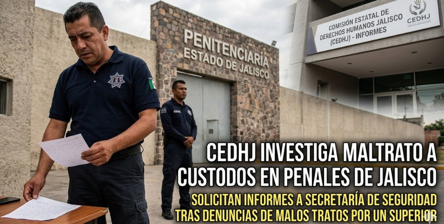 Guadalajara, Jalisco 19 marzo 2026.- Después de iniciar un acta de investigación de oficio tras quejas de custodios por el trato que reciben de un superior, la Comisión Estatal de Derechos Humanos Jalisco (CEDHJ) pidió informes a la Secretaría de Seguridad. Se abrió la investigación 14/2026.