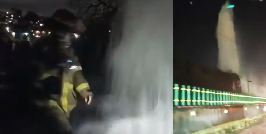 La noche de este viernes se reportó una columna de agua de más de 4 metros de altura; el líquido liberado afectó la circulación vehicular en el Kilómetro 8 de la Carretera Chamapa-Lechería.