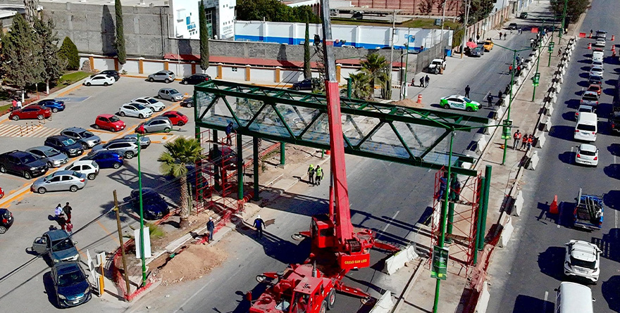 Soledad de Graciano Sánchez, SLP, 18 enero 2025.- El Ayuntamiento de Soledad de Graciano Sánchez informa la continuidad en la construcción del Puente Peatonal en el bulevar Valle de los Fantasmas, con lo que muy pronto miles de peatones y automovilistas verán fortalecida la seguridad vial en la zona.