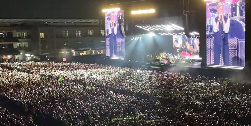 El espectáculo tuvo una duración de dos horas y media, el repertorio con canciones icónicas del músico británico. Un show de recuerdos aderezado con una fiesta de figuras luminosas en el cielo, no era Lucy en el cielo de diamantes, eran drones, le siguieron fuegos artificiales, y el toque sentimental homenajeando a grandes músicos contemporáneos. Todo comenzó con los fuegos artificiales al momento de interpretar el soundtrack de Live And Let Die, de la película del mismo nombre una más de la leyenda del cine de acción, James Bond de 1973.