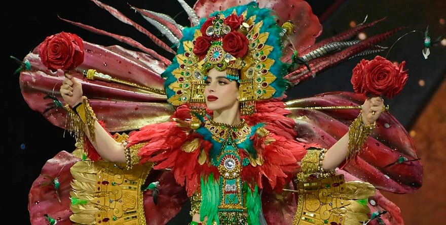 Tailandia: .- La representante de México para Miss Universo 2025, Fátima Bosch, desfiló con un traje típico inspirado en Xochiquetzal, una deidad mexica cuyo nombre significa “Flor Preciosa” o “Flor de Plumas Preciosas” y se relaciona con la belleza, el amor y las flores.