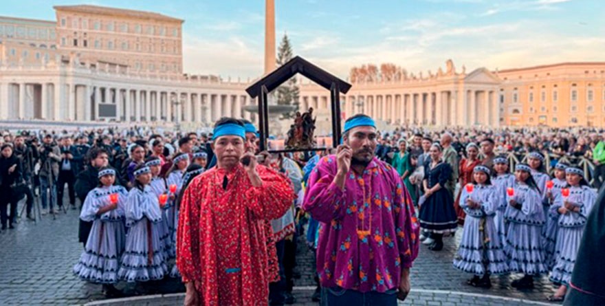 La banda de Ojinaga con su vocalista Tony Meléndez, se aventó sus rolas en la iglesia San Salvatore in Lauro, donde arrancaron oficialmente las celebraciones guadalupanas en territorio italiano. Y no fue cualquier presentación: compartieron escenario con la tradición viva del norte, incluidos artistas rarámuri como el pianista Romeyno Gutiérrez Luna, que llegó a ponerle ese toque ancestral que te eriza la piel.