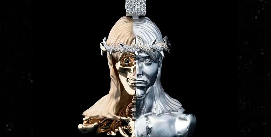 Se trata de un dije mitad calavera y mitad el rostro de luchador de WWE, mismo que fue tallado en oro blanco y amarillo, además de tener incrustaciones de diamante en el ojo, la cabeza y en una corona de espinas que asemeja la figura de Jesucristo.