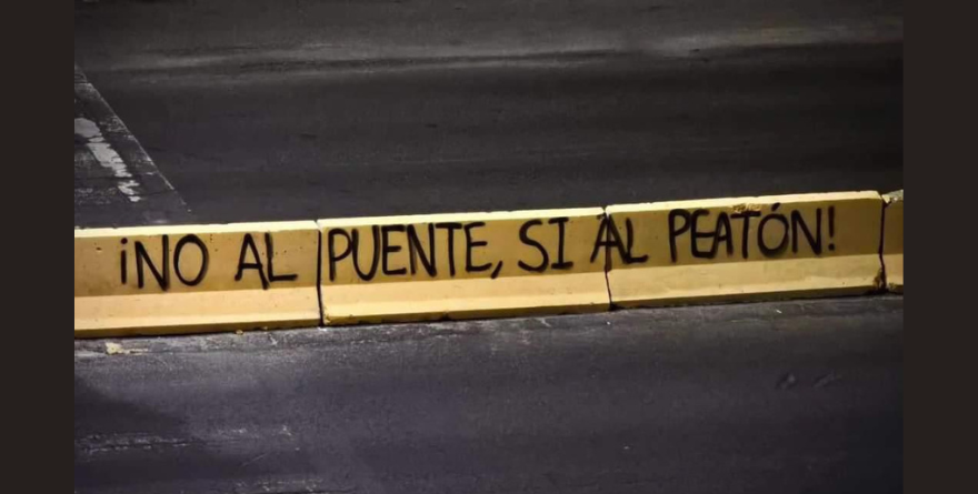 En fotografías que circulan en redes sociales, se observa un mensaje que capitalinos anónimos colocaron con pintura en spray sobre una de las contenciones de Salvador Nava, cerca del desnivel vehicular que Galindo inauguró este jueves, el cual se lee: “NO AL PUENTE, SÍ AL PEATÓN”, denuncia dirigida al edil por no haber incluido las facilidades en la infraestructura para caminar de forma segura por la zona.