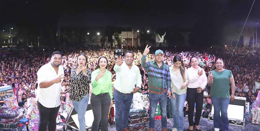 Desde la presidencia municipal de Matlapa, ante cientos de niñas, niños, jóvenes y adultos mayores, y con un ambiente festivo, el Mandatario Estatal entregó diversos regalos a niñas y niños y dio paso a la presentación del grupo musical Rieleros, que puso a bailar a chicos y grandes disfrutando de un ambiente festivo por la Navidad.