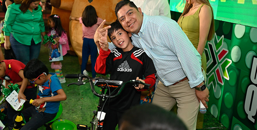 Soledad de Graciano Sánchez, SLP, 1 mayo 2025.- El Gobernador de San Luis Potosí Ricardo Gallardo Cardona, conmemoró el Día de la Niñez en Soledad de Graciano Sánchez con el arranque de las obras del parque lineal Circuito Potosí-Cactus, un espacio diseñado para fomentar la convivencia familiar y el deporte. Durante el evento, cientos de niñas, niños y sus familias disfrutaron de actividades recreativas y recibieron regalos como bicicletas, muñecas y juguetes en un ambiente festivo.