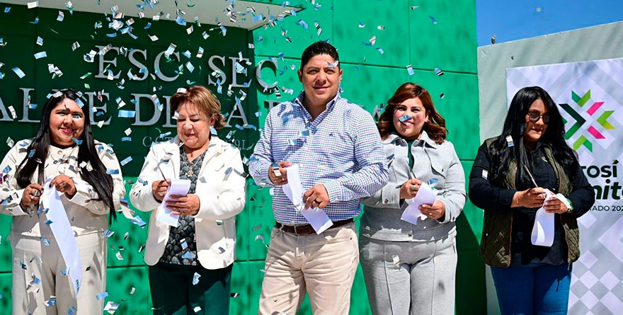 Posteriormente, el Gobernador inauguró la totalmente nueva Escuela secundaria general “Valle de la Palma”, que cuenta con aulas, dirección, sanitarios, plaza cívica, red eléctrica e instalaciones para una educación sin límites, garantizando espacios dignos y modernos para la niñez y juventud soledense.